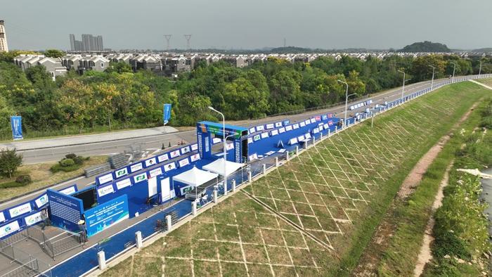赛事场地依托梁子湖优越的自然生态条件,精心打造“水、陆、骑”三位一体的生态赛道:游泳赛段位于水质达Ⅲ类以上的梁子湖公开水域,骑行赛道穿行于入选2024“中国骑行地图”的107公里环湖绿道,跑步赛道则融合湖光山色,让选手在自然美景中完成冲刺。