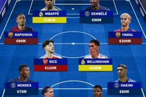 德转列金球候选阵容:登贝莱、姆巴佩、亚马尔在列,总价超11亿欧
